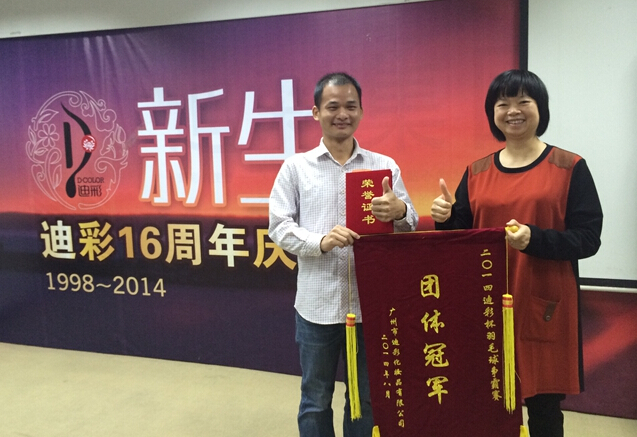 生命在于運(yùn)動(dòng),體育洋溢青春。在這秋風(fēng)送爽,丹桂飄香時(shí)節(jié),讓我們備受矚目的“2014迪彩杯羽毛球爭(zhēng)霸賽”也圓滿的畫上了句號(hào)。在此次賽事中分別設(shè)立冠亞季團(tuán)體獎(jiǎng)、男子單打、女子單打)三大獎(jiǎng)項(xiàng),頒獎(jiǎng)典禮113在公司總部培訓(xùn)室舉行,頒獎(jiǎng)嘉賓由許桂萍董事長(zhǎng)、曾佑春工會(huì)主席擔(dān)任。