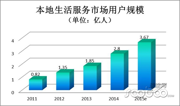 本地生活服務(wù)市場用戶規(guī)模增長持續(xù) 2015年達3.67億人
