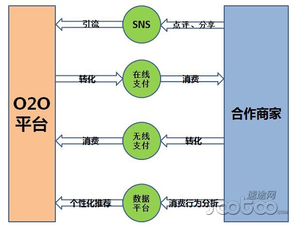 然后諸多合作商家根據(jù)O2O平臺提供的信息,實現(xiàn)服務(wù)的精準定位。一方面,O2O將用戶需求轉(zhuǎn)化為實際的用戶消費,服務(wù)于合作商家;另一方面,通過合作商家的反饋信息完善平臺的功能從而更好的為用戶提供相應(yīng)的服務(wù)信息。